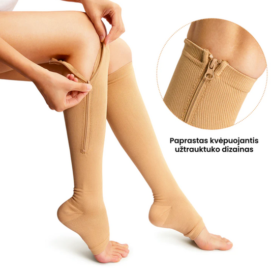 Kompresinės kojinės su užtrauktuku, kurios pagerina kraujotaką (pora)