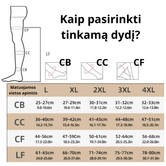 Kompresinės kojinės iki kirkšies nuo skausmo ir tinimo (PORA)